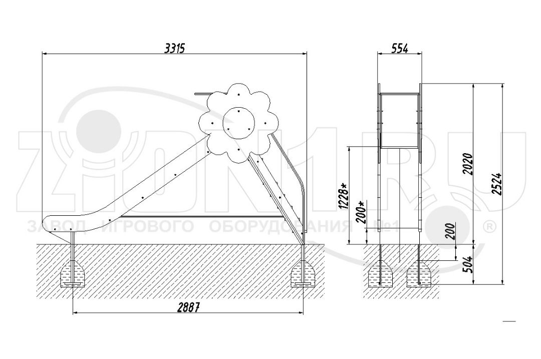 Розміри 3315х550х2020 мм (Д, Ш, В)