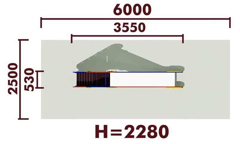 Розміри 3550х530х2280 мм (Д, Ш, В)